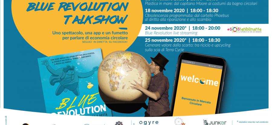 La graphic novel Blue Revolution, disegnata da Benni, edita da BeccoGiallo Editore a marzo 2020, sui testi di Alberto Pagliarino, Nadia Lambiase e Paolo Piacenza è lo spunto per un talk online che per quattro serate dall'11 novembre, all’ora dell’aperitivo, coinvolgerà tutti gli interessati a scoprire e conoscere meglio l’economia circolare.